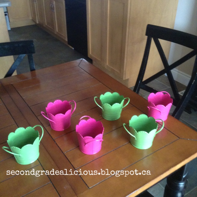 I found these adorable buckets at Michael’s for ONLY $1.50 a piece (plus I got my teacher discount)! I’m thinking of using them for math manipulatives when I need to pass out small amounts to groups.