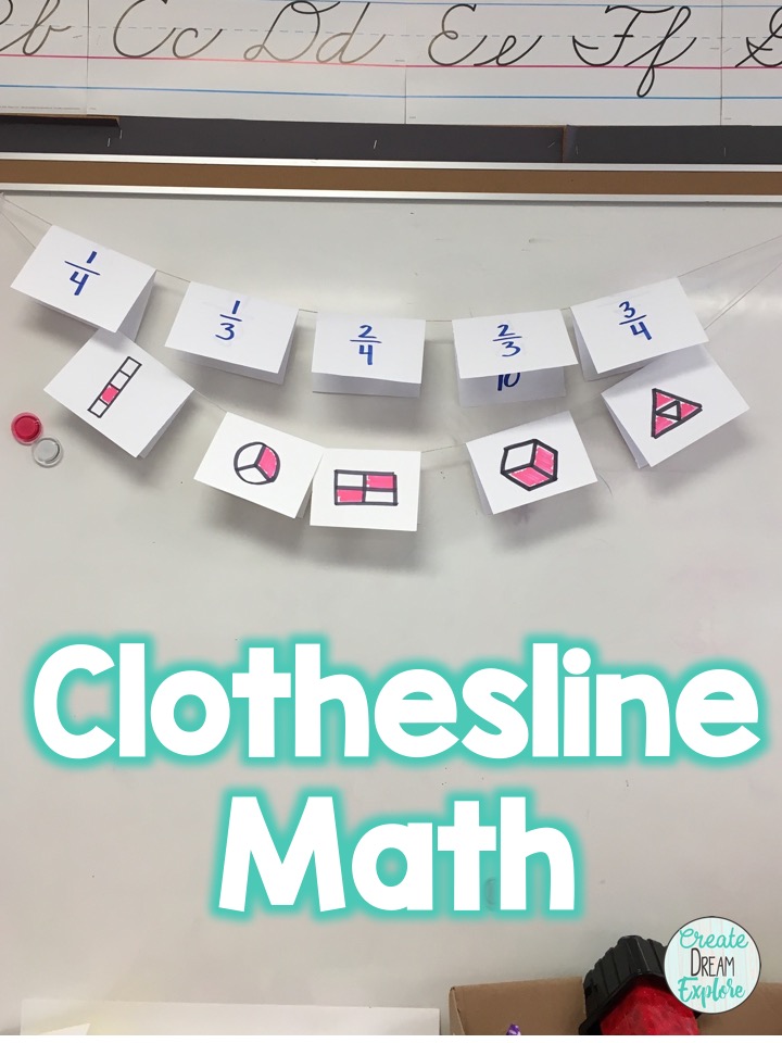 In the picture above I have a double clothesline set up so that students can move the picture of the fraction to match the fraction. They also have to put them in order from least to greatest. I used this as a number talk one day before my lesson.